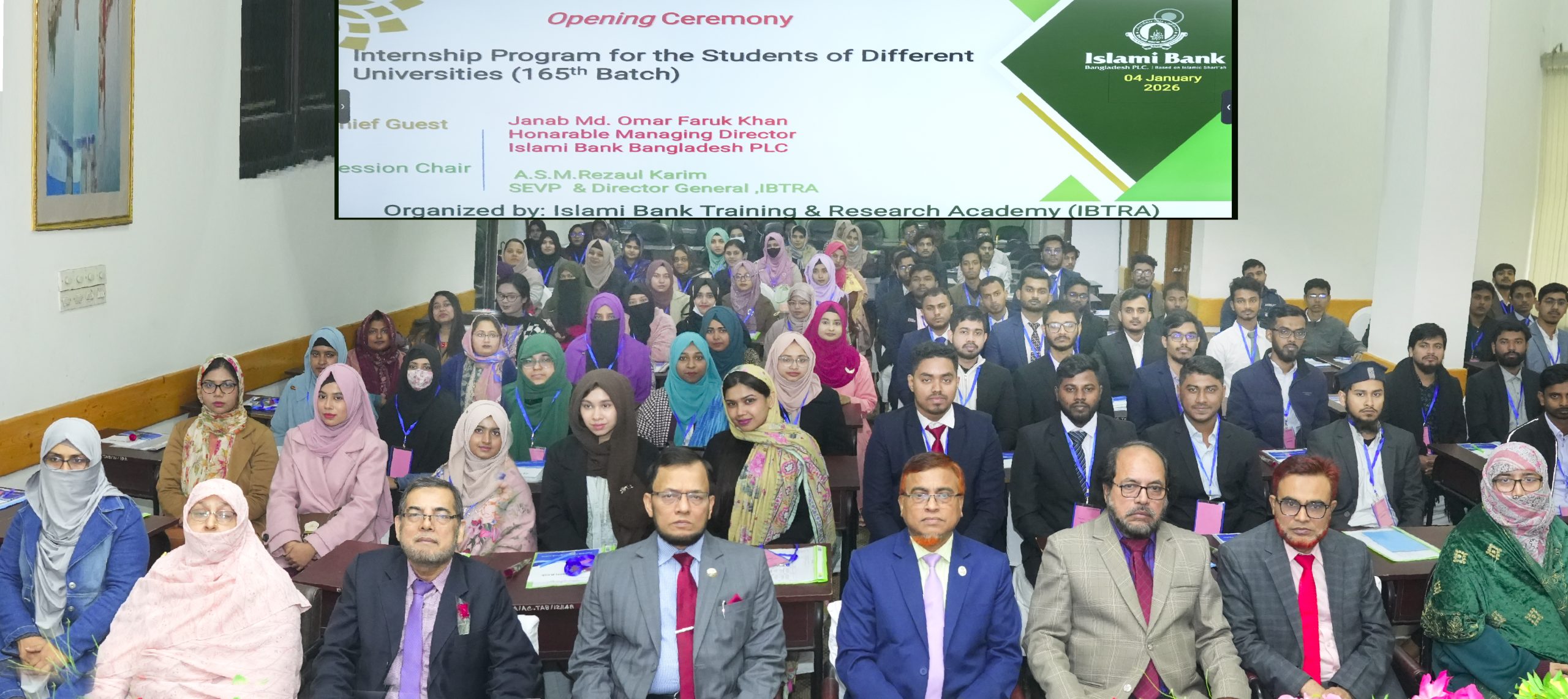 ইসলামী ব্যাংক ট্রেনিং অ্যান্ড রিসার্চ একাডেমি (আইবিটিআরএ) আয়োজিত ১৬৫তম ইন্টার্নশিপ প্রোগ্রাম ৪ জানুয়ারি ২০২৬, রবিবার শুরু হয়েছে।